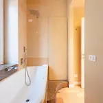 Along with a range of amenities such as ironing facilities, the interior features a television for a comfortable stay. The accommodation is also furnished with a sofa and a work desk. A highlight of the apartment for guests is the presence of a hairdryer, toiletries, and bath sheets in the bathroom. Moreover, there is a bidet, a separate toilet, and a shower as well.